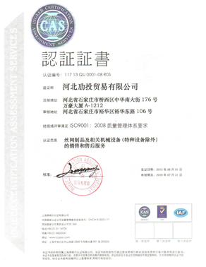 产品质量是一个企业生存之根本,我公司下大力气建立了一整套科学、严密、有效的质量保障体系。严格执行ISO9001质量管理体系进行生产,从每个生产环节入手,控制生产的全过程,保证产品的零缺陷。